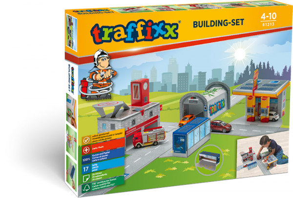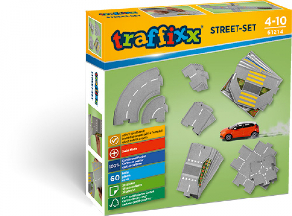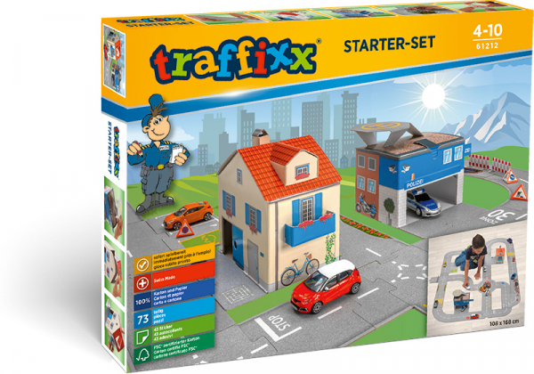 Traffixx bietet grenzenlose Kombinatonsmöglichkeiten und langanhaltenden Spielspass. Alle Strassen- und Gebäudeelemente lassen sich ganz einfach und ohne Verwendung von Klebstoff zusammenstecken. So macht Spielen garantiert Freude!